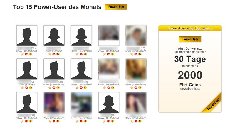 - Power-User: wenn Du innerhalb 30 Tage mind. 2000 Flirtcoins erworben hast